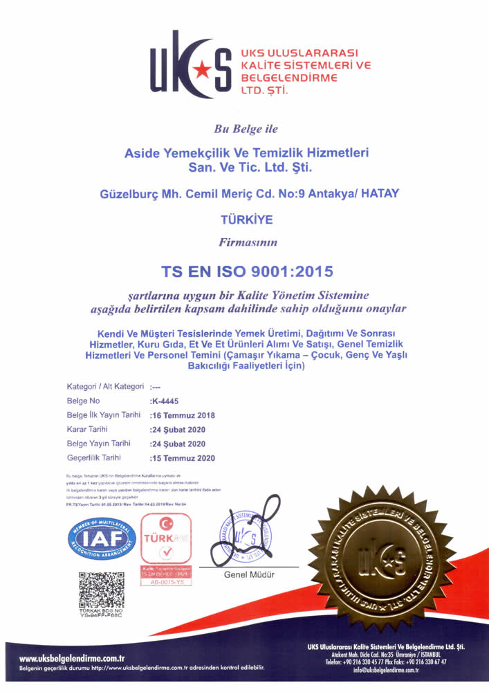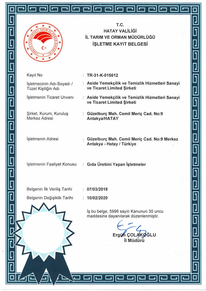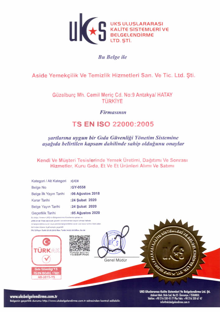 ASİDE YEMEKÇİLİK, sektöründe en kaliteli çözümleri üretmek için; kontrollü üretim aşamalarını tüm iş süreçlerine uygulamayı ilke edinmiştir.